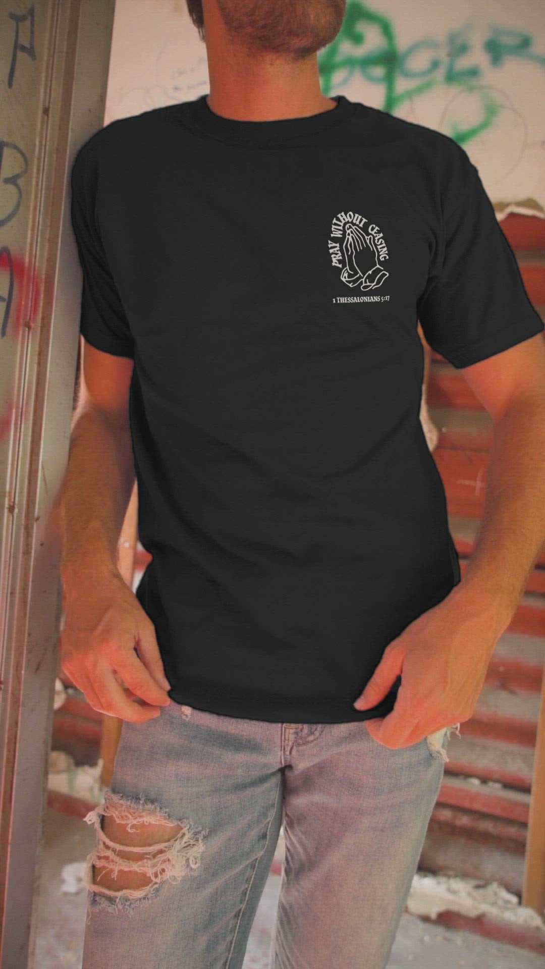 Mens Christian Streetwear t shirt -Pray without Ceasing